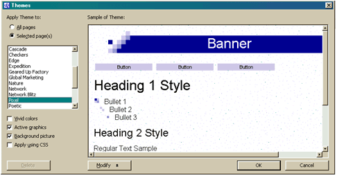 3. يظهر مربع Theme ومنه نقوم باختيار النمط الذي نريد تطبيقه على صفحة واحدة أو على كل الصفحات ثم نضغط على زر Ok .