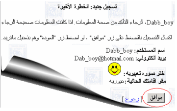بعد التأكد من صحة البيانات سنقوم باعتماد البيانات التي قمنا بإدخالها , انقر على زر "موافق" لإنهاء التسجيل.